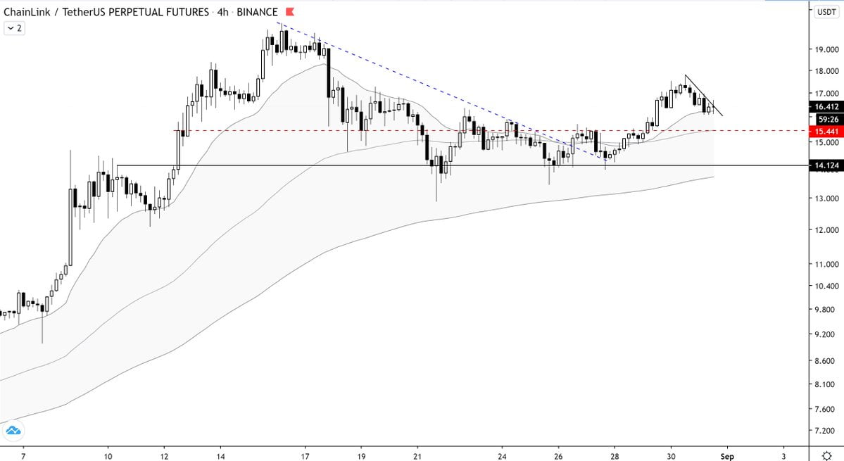 At the time of writing, Chainlink is trading up just over 1% at its current price of $15.90.