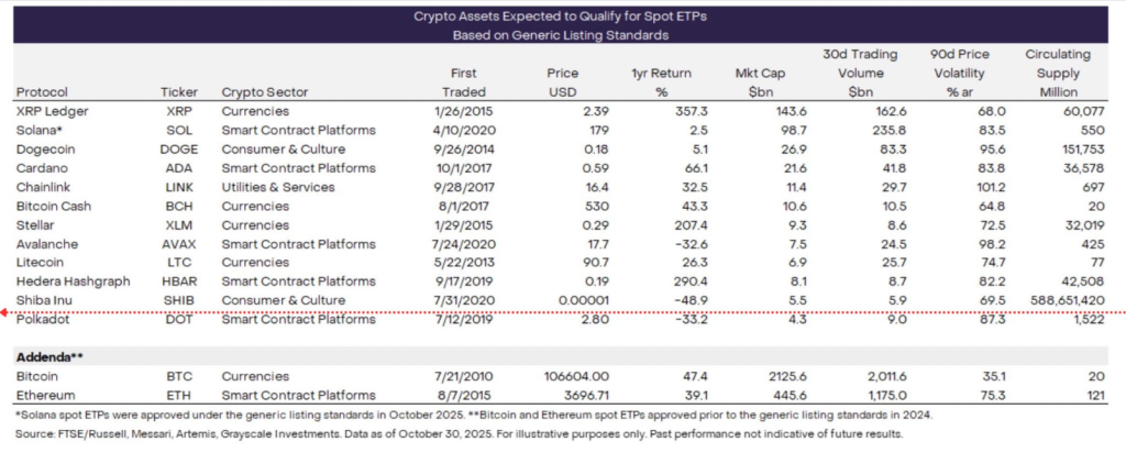 The framework covers five niches, and Grayscale’s latest report lists SHIB among the assets that meet the SEC’s Generic Listing Standards (GLS) criteria.