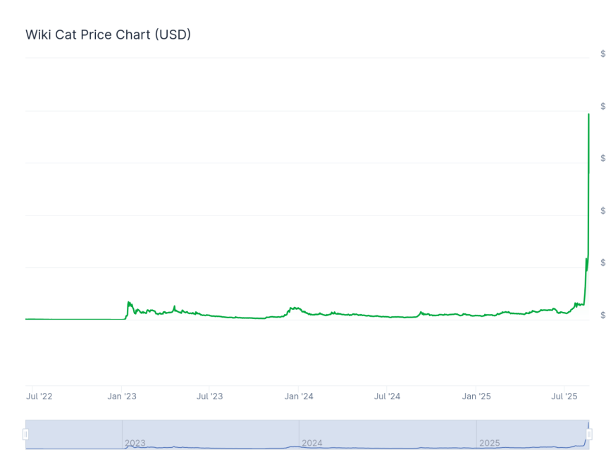 即使加密貨幣市場連跌六天,Wiki Cat (WKC) 依然強勢逆襲,在同一時期上漲293%,令市場大跌眼鏡。