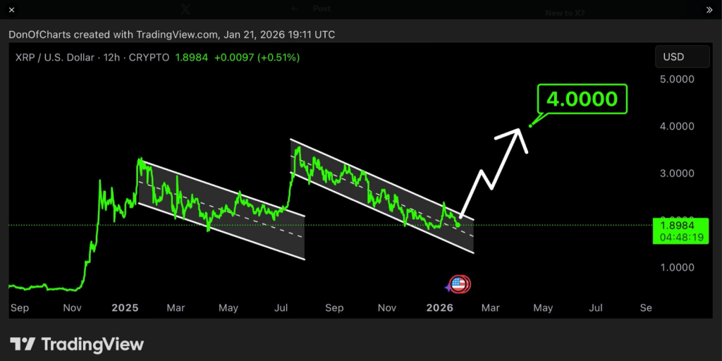 DonWedge projects that if the breakout occurs, XRP could aim for $4. From current levels, this would require a little over a 100% increase. Traders note, however, that moves without volume confirmation can fail, leading to false breakouts and extended consolidation.