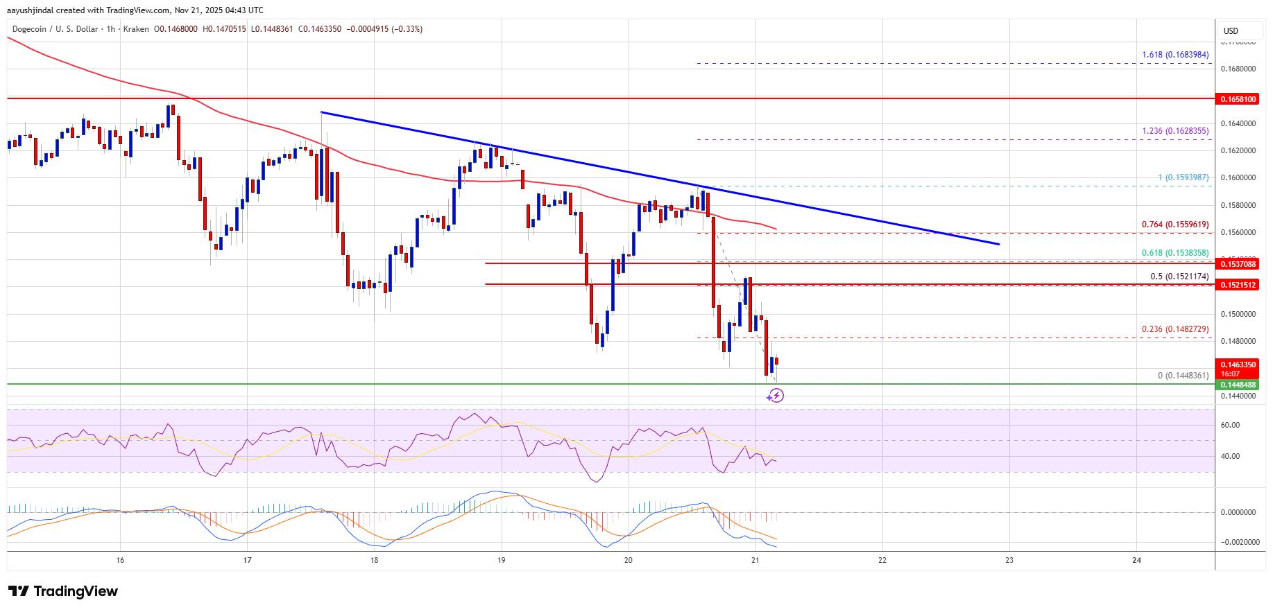 Dogecoin price started a fresh decline after it closed below $0.1620, like Bitcoin and Ethereum. DOGE declined below the $0.160 and $0.1550 support levels.