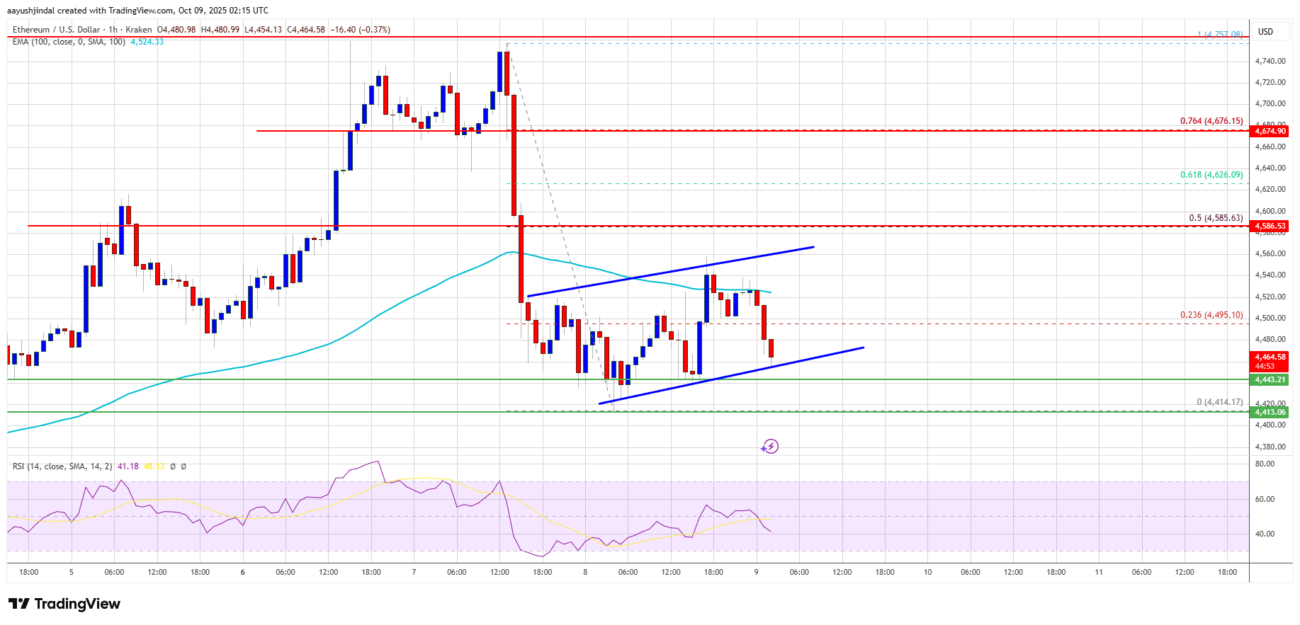 Ethereum price extended gains above $4,620 and $4,650, like Bitcoin. ETH price tested the $4,750 resistance zone before there was a fresh decline. A low was formed at $4,414 and the price is now consolidating losses.