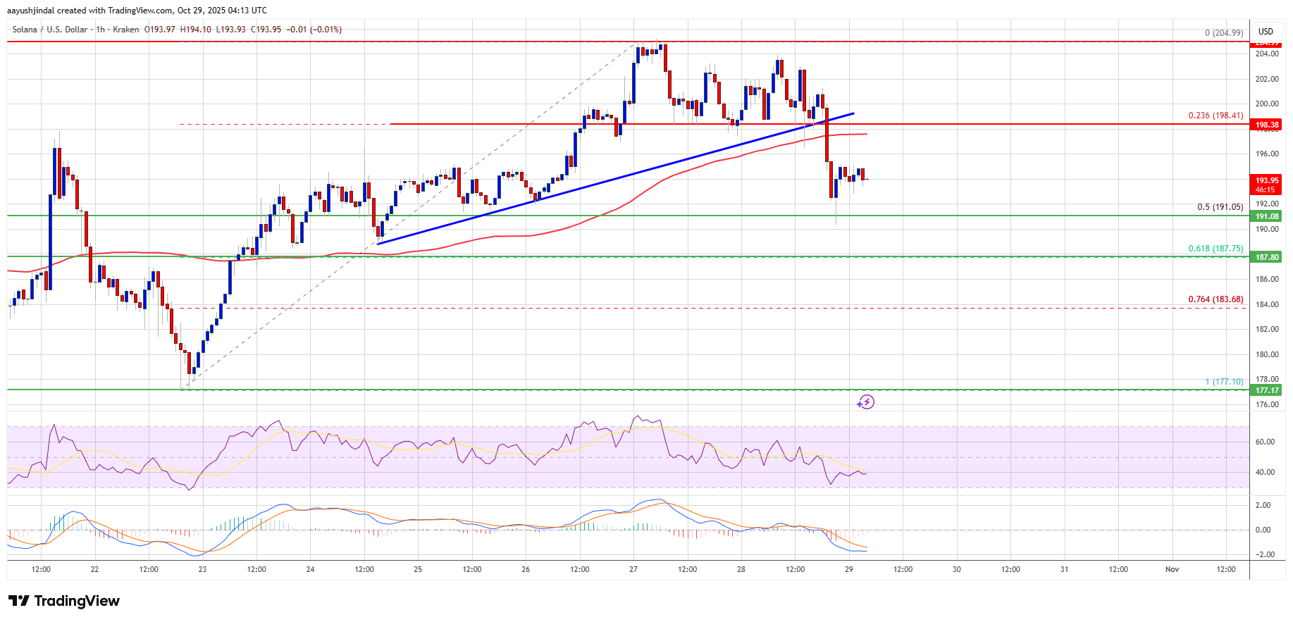 Besides, there was a break below a bullish trend line with support at $198 on the hourly chart of the SOL/USD pair. Solana is now trading below $198 and the 100-hourly simple moving average.