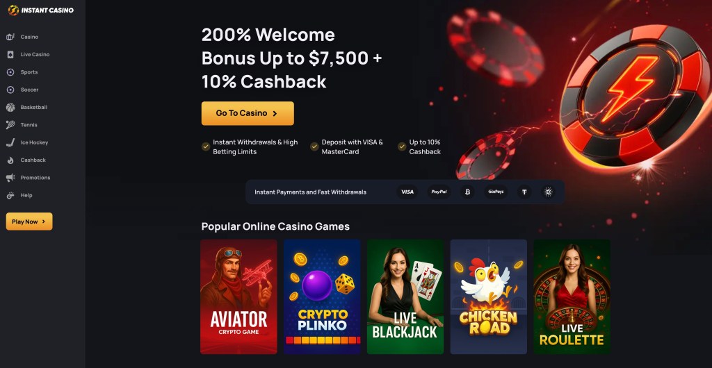 4. Instant Casino – 提供即時提款與零手續費的百家樂加密平台
