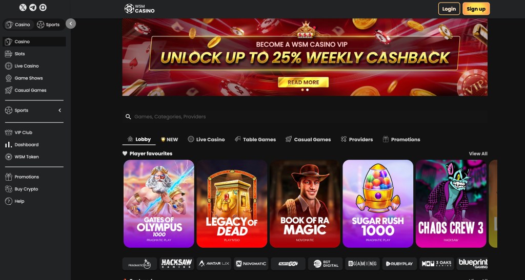 - WSM Casino – 以高額紅利與促銷活動著稱的頂級百家樂加密賭場