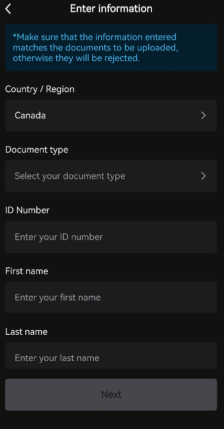 Bitunix要求所有客戶在存款、交易或提現前完成身份驗證。進入帳戶設置,點擊或輕觸“身份驗證”,然後選擇“驗證”。輸入所需信息,包括姓名、出生日期和地址。您還需要上傳身分證件照片,例如護照或駕駛證,以及顯示您地址的近期財務報表或水電費帳單。