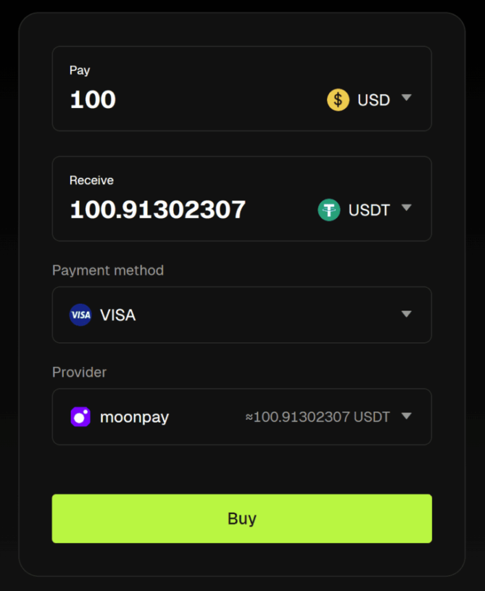 Bitunix未直接提供法幣入金服務,而是整合MoonPay與Volet等第三方支付商,提供用戶加密貨幣購買介面。用戶可透過信用卡、金融卡或電子錢包,以超過30種法定貨幣購買超過100種加密資產。這項機制簡化了新手入場門檻,並擴展了全球市場的存取路徑。