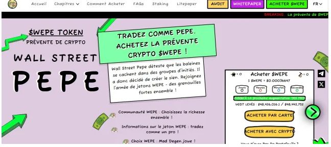 Wall Street Pepe est une plateforme crypto qui cherche à rendre les outils de trading sophistiqués accessibles aux investisseurs particuliers. Ce projet s’inspire de l’univers des memes pour attirer une large communauté. Il propose des services généralement réservés aux grands investisseurs appelés « whales ».