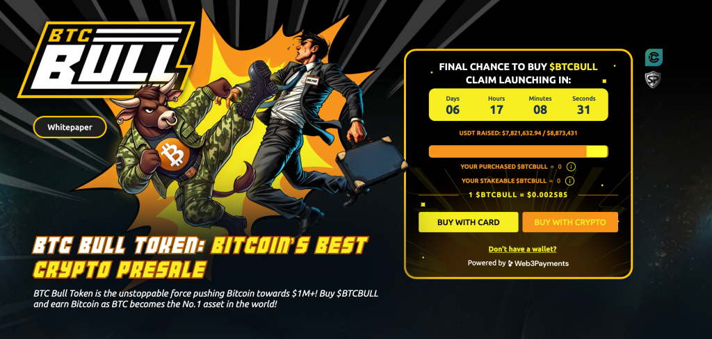 Derzeit befindet sich $BTCBULL noch im Presale, wobei schon fast 8 Millionen Dollar investiert wurden. Analysten erwarten, dass der Kurs nach dem Börsenlisting ein Vielfaches des aktuellen Vorverkaufspreises erreichen könnte. Auf Youtube und X finden sich bereits zahlreiche Prognosen, die sogar von einem Anstieg um das 20- bis 50-fache ausgehen.