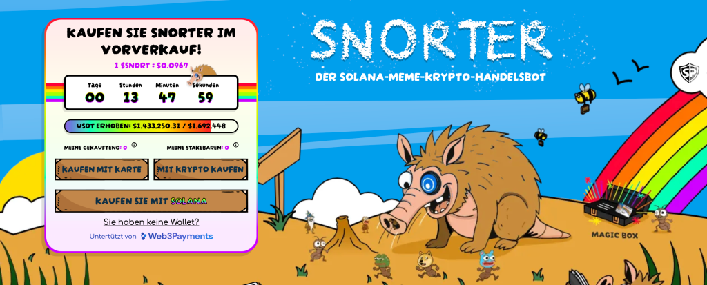 Die Nachfrage ist bereits jetzt enorm. Fast 1,5 Millionen Dollar wurden innerhalb kürzester Zeit investiert. Da der Tokenpreis im Presale regelmäßig erhöht wird, winkt frühen Käufern bereits ein erster Buchgewinn. Wer beim Börsenstart schon dabei ist, könnte schnell zu den großen Gewinnern gehören. Vor allem, wenn sich der Trading Bot durchsetzt, hat $SNORT das Potenzial, seinen Wert zu verzehnfachen.