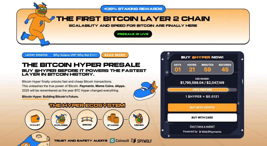Mit fast 1,8 Millionen Dollar, die im Vorverkauf umgesetzt wurden, gehört $HYPER schon jetzt zu den spannendsten Altcoins am Kryptomarkt. Die Kombination aus echtem Nutzen und starkem Konzept hat laut Analysten das Potenzial, den Coin in die Top 100 zu katapultieren. Frühe Investoren profitieren zudem von regelmäßigen Preissteigerungen im Presale und einer besonders hohen Staking-Rendite.
