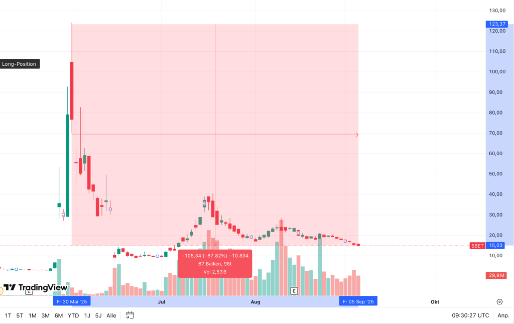 Ein Blick auf die Zahlen zeigt, warum viele Marktbeobachter von einer massiven Unterbewertung ausgehen. Während SharpLink ETH im Wert von rund 3,6 Milliarden US-Dollar hält, liegt die Marktkapitalisierung aktuell bei nur 2,9 Milliarden US-Dollar. Allein durch eine Anpassung an diesen inneren Wert könnte die Aktie deutlich zulegen.