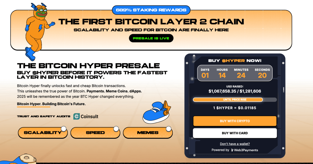 Die Idee kommt an. Der native Token $HYPER befindet sich aktuell im Vorverkauf und Investoren zeigen sich begeistert. Innerhalb weniger Tage wurde bereits über eine Million Dollar in den neuen Coin investiert. Wer früh einsteigt, profitiert nicht nur vom günstigen Einstiegspreis, sondern auch von einer Preisstaffelung, die alle zwei Tage angepasst wird, was frühe Investoren mit Buchgewinnen belohnt.