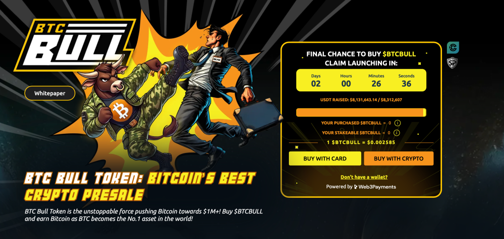 Derzeit befindet sich der BTC Bull Token noch im Vorverkauf – allerdings nur noch für kurze Zeit. Schon am Montag schließt das Presale-Fenster, und die bisherigen Zahlen sind beeindruckend. Über 8 Millionen Dollar wurden bereits investiert. Analysten erwarten daher eine massive Kursexplosion beim offiziellen Börsenstart. Ein Anstieg um das 10- bis 20-Fache scheint durchaus realistisch.