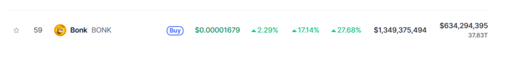 (Der Kurs von $BONK ist in den letzten 24 Stunden um mehr als 17 Prozent angestiegen – Quelle: coinmarketcap.com)