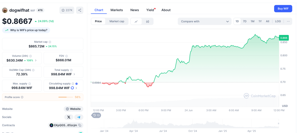 ($WIF Kursentwicklung in den letzten 24 Stunden – Quelle: Coinmarketcap)