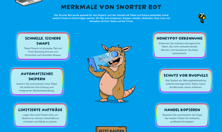 Das junge Projekt hat sich als Solana-basierter Trading-Bot etabliert und möchte zukünftig einen Schritt weiter gehen: Snorter scannt die Blockchain in Echtzeit, erkennt neue Liquidität und prüft Smart Contracts, um riskante Projekte herauszufiltern. Damit sollen Trader nicht länger in die klassische Falle tappen, zu spät in gehypte Tokens einzusteigen und als Exit-Liquidität der Whales zu enden. Der Bot verschafft frühzeitigen Zugang zu Chancen, die sonst oft unbemerkt bleiben.