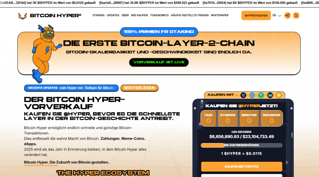 Zudem gibt es verschiedene Projekte im Presale, die ebenfalls nicht außer Acht zu lassen sind, wenn es um nachhaltige Preissteigerungen geht. Hier ist vor allem Bitcoin Hyper zu erwähnen. Bitcoin Hyper hat durchaus das Potenzial, dass a) der Preis des eigenen Token HYPER durch die Decke geht und zudem könnte man b) den Bitcoin auf lange Sicht stärken.