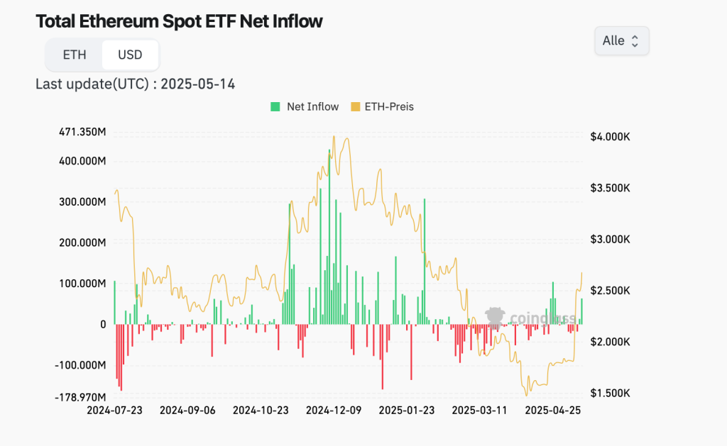(Kapitalzu- und Abflüsse bei Ethereum – Quelle: Coinglass)