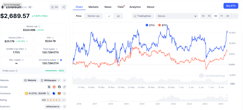Über viele Monate hinweg konnte Ethereum nicht mit der Performance von Bitcoin mithalten. Während der Bitcoin-Kurs im letzten Jahr um mehr als 50 % zulegte, verlor Ethereum rund 27 % an Wert. Wer auf eine Altcoin Season hoffte, wurde enttäuscht. Zumindest bisher. Denn das Blatt beginnt sich nun zu wenden, wie der direkte Vergleich der beiden Kurse eindrucksvoll zeigt.