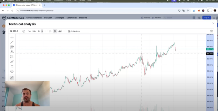 Ein klarer Indikator für die Entwicklung ist die Bitcoin-Dominanz. Diese war zuletzt stark gestiegen – unter anderem durch die ETF-Zulassungen. Zwar ist in den letzten Tagen ein Rückgang zu beobachten, aber noch liegt der Wert bei über 60 Prozent. Historisch gesehen fiel die Dominanz in früheren Altcoin Seasons teilweise unter 40 Prozent. Doch genau dieses Szenario wird aktuell eher als unwahrscheinlich bewertet.