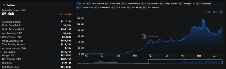 Solana TVL ist wieder kräftig am Steigen, Quelle: https://defillama.com/chain/solana