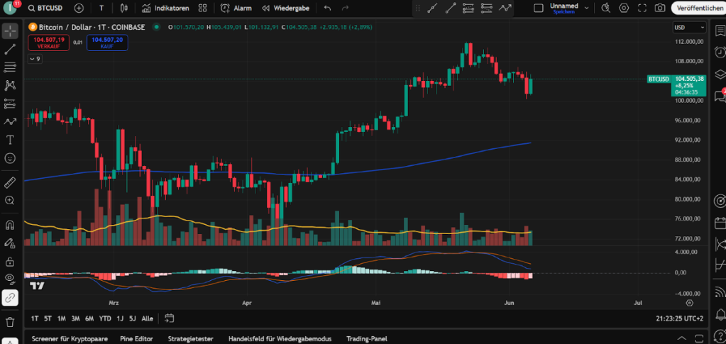 Bitcoin hat ein paar harte Tage hinter sich. Nachdem der Kurs nach einer langen Korrektur am 22. Mai endlich ein neues Allzeithoch bei 111.970,17 US-Dollar bildete, währte die Euphorie nicht lange. Eine erneute Korrektur suchte die Bitcoin-Investoren heim und diese wurde sogar noch von einem öffentlich ausgetragenen Konflikt der beiden ehemaligen Verbündeten Donald Trump und Elon Musk befeuert. Besonders gestern, als der Streit der beiden eskalierte, musste Bitcoin starke Kursverluste verkraften. Heute erholt sich der Kurs der größten und ältesten Kryptowährung jedoch bereits wieder und bewegt sich in Richtung einer vielleicht alles entscheidenden Linie.