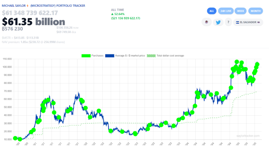 (Seit dem ersten Bitcoin-Investment im Jahr 2020 ist das Krypto-Vermögen von Strategy enorm gewachsen – Quelle: saylortracker.com)