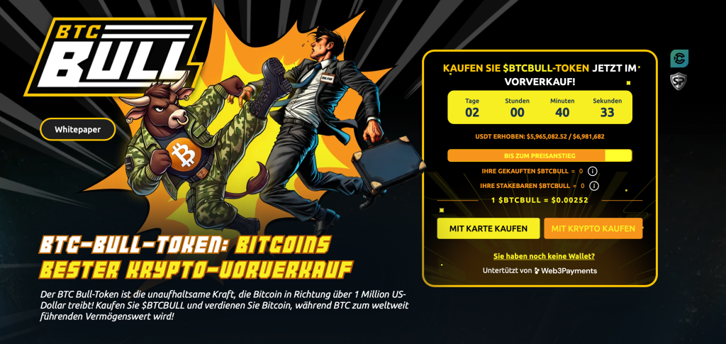 Derzeit befindet sich der BTC Bull Token noch im Presale, wobei bereits knapp 6 Millionen Dollar umgesetzt wurden. Das macht schon deutlich, welches Potenzial hier schlummert. Anleger haben aktuell also noch die Chance, zum günstigen Fixpreis einzusteigen, während Analysten aufgrund der hohen Nachfrage vermuten, dass der Kurs nach dem Launch schnell durch die Decke gehen könnte.
