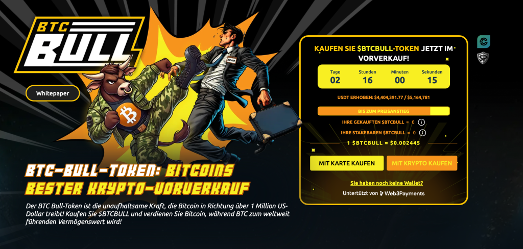 Trotz der schwierigen Marktlage entwickelt sich der Vorverkauf von $BTCBULL extrem stark. Bereits über 4,4 Millionen Dollar wurden investiert, noch bevor der Coin überhaupt auf den Kryptobörsen gelistet ist.