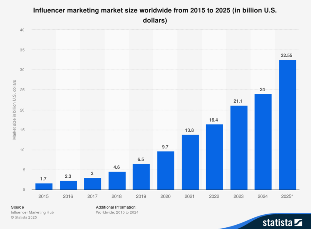 Das könnte sich auf jeden Fall auszahlen. Immerhin wird der Markt bis 2028 auf 85 Milliarden Dollar geschätzt, wovon 32 Milliarden Dollar auf Influencer zurückzuführen sein sollen.