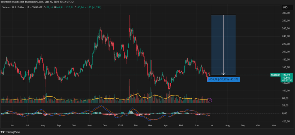 (Seit seinem Allzeithoch ist der Kurs von Solana um mehr als 52 Prozent gefallen – Quelle: Tradingview.com)