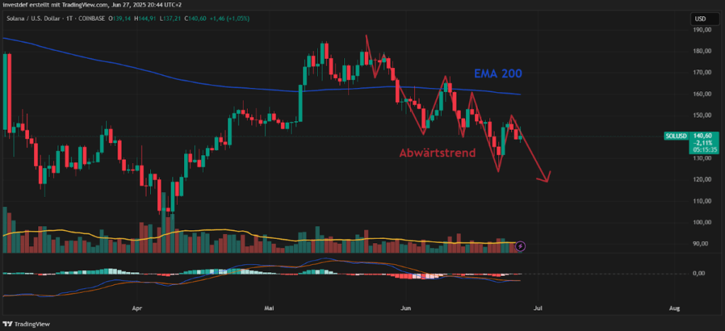 (Der Chart von Solana zeigt derzeit eine Menge bearisher Signale an – Quelle: Tradingview.com)