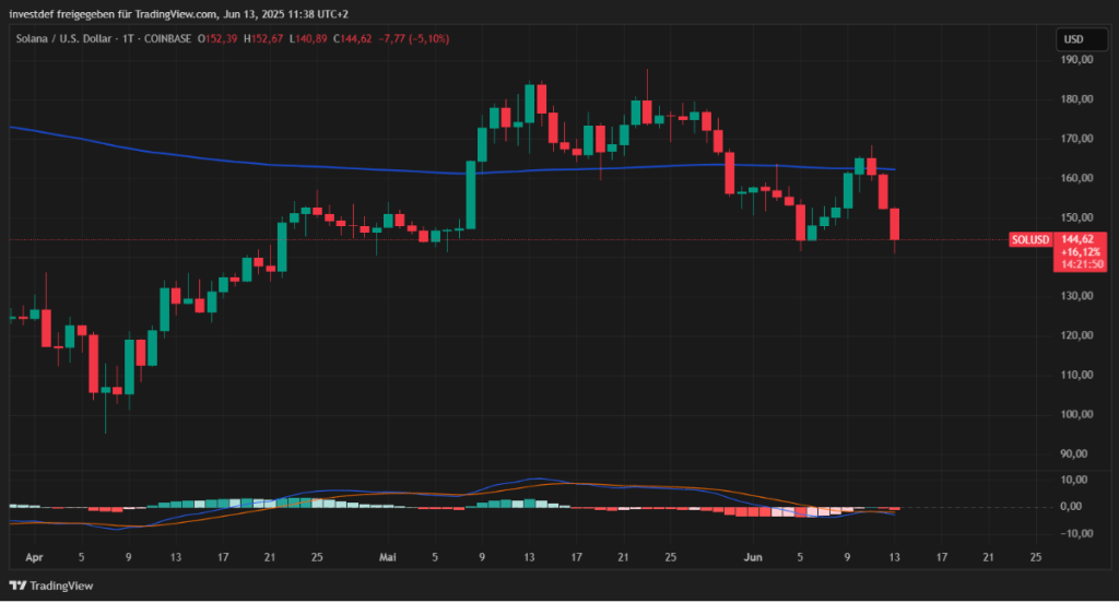 Die gestrige Nacht bzw. der heutige Morgen hielten für Anleger wieder einige Überraschungen bereit. Nachdem die israelische Armee einen großangelegten Raketenangriff auf den Iran ausgeführt hatte, sind die Kurse vieler Coins stark gefallen. Bitcoin ($BTC), Ethereum ($ETH) und Solana ($SOL) haben jeweils stark verloren, wobei es letzteren von den großen Coins am härtesten erwischte. Um mehr als 9 Prozent ist der $SOL-Kurs eingebrochen. Und die Eskalation kommt zum denkbar ungünstigsten Punkt für Solana, denn nun droht ein Crash auf bis zu 100 US-Dollar!
