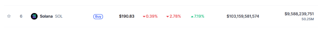 (In den letzten 7 Tagen erzielte Solana einen Kursgewinn von 7,19 Prozent, während Bitcoin einen Kursverlust verkraften musste – Quelle: coinmarketcap.com)
