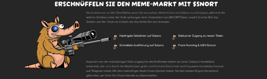 Snorter ist ein brandneuer Handelsbot basierend auf dem Solana-Ökosystem und bildet damit die neueste und verbesserte Konkurrenz zum beliebten BonkBot. Allerdings kann Snorter deutlich mehr. Denn der Bot zoomt in neue Coins hinein, durchleuchtet diese genauestens und erkennt Scam-Coins zuverlässig. Zusätzlich können Anleger Kauf- und Verkaufsorders bei Snorter einfach und schnell über Telegram abwickeln. Analysten erwarten bereits jetzt, dass die Nutzerzahlen von Snorter nach dem Launch in wenigen Wochen sprunghaft ansteigen könnten, weshalb sie zugleich beim nativen $SNORT-Token des Projekts einen starken Kursanstieg nach dem ICO erwarten.