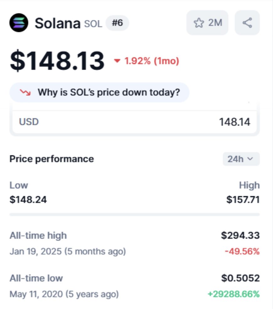 (Der Kurs von Solana befindet sich noch immer mehr als 50 Prozent unter seinem Allzeithoch bei 294,33 US-Dollar – Quelle: coinmarketcap.com)