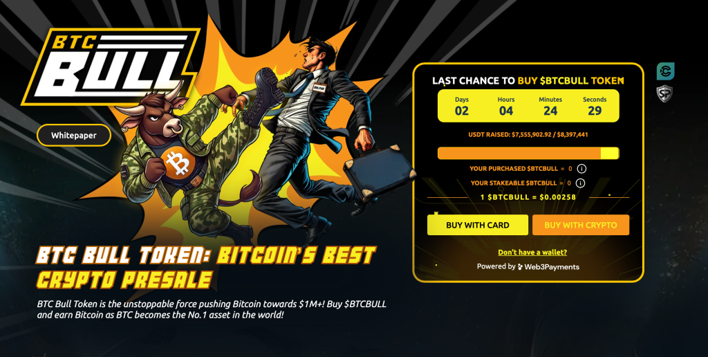 Aktuell befindet sich der BTC Bull Token noch im Vorverkauf. Anleger haben somit noch für kurze Zeit die Chance, frühzeitig zu einem fixen Preis einzusteigen, bevor der Token an den Börsen gelistet wird. Analysten rechnen mit einer starken Nachfrage und einem möglichen Kursanstieg von über 1.000 %, wenn die Bitcoin-Rallye weitergeht.