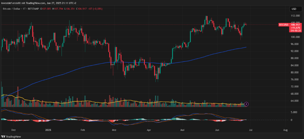 Obwohl die geopolitischen Umstände noch immer turbulent sind und die letzte Woche noch von starken Abverkäufen auf dem Kryptomarkt geprägt war, hat sich Bitcoin in der aktuellen Woche wieder stark erholen können. Vom Tiefpunkt am vergangenen Sonntag bei 98.240 US-Dollar ist der Kurs der größten und ältesten Kryptowährung wieder um mehr als 10 Prozent angestiegen.