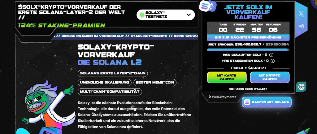 Jetzt rechtzeitig einsteigen und $SOLX im Presale kaufen.