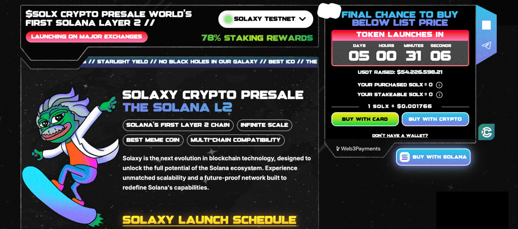 Jetzt noch für kurze Zeit $SOLX im Presale kaufen.