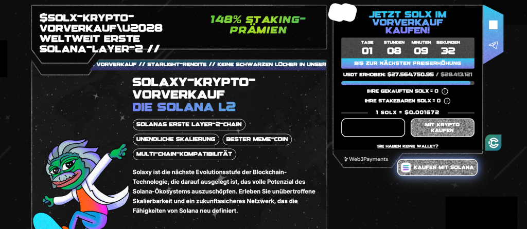 Jetzt rechtzeitig einsteigen und Solaxy im Presale kaufen.