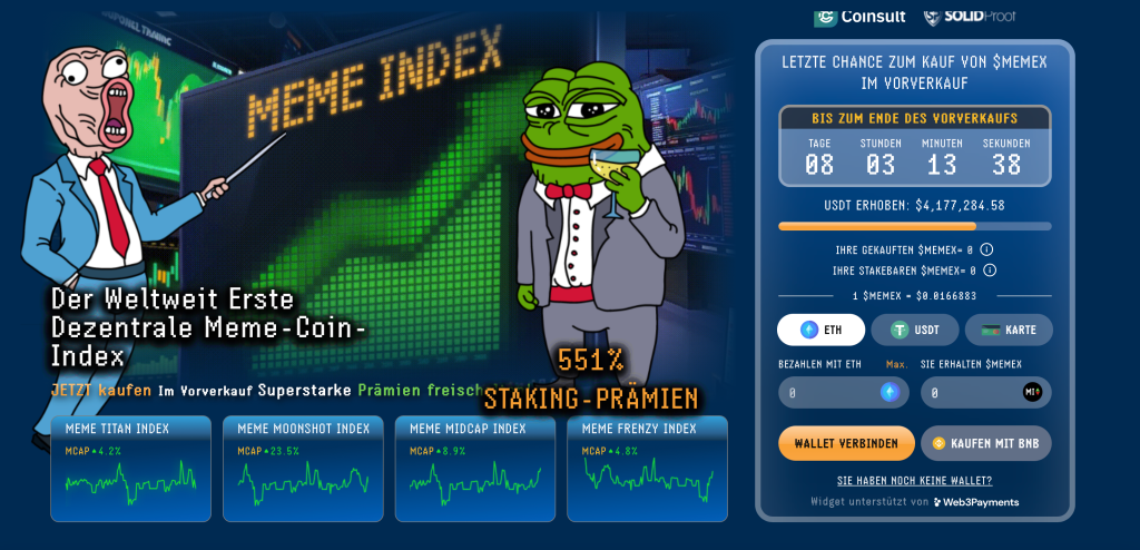 Der dazugehörige $MEMEX-Token könnte sich nach der Markteinführung der Meme Indizes schnell durchsetzen und an Bedeutung gewinnen, da Meme Index das Potenzial hat, die Art wie Anleger Meme Coins traden, nachhaltig zu verändern. $MEMEX dient dabei auch als Governance-Token, sodass Investoren mitbestimmen können, welche Coins in die Indizes aufgenommen werden sollen.
