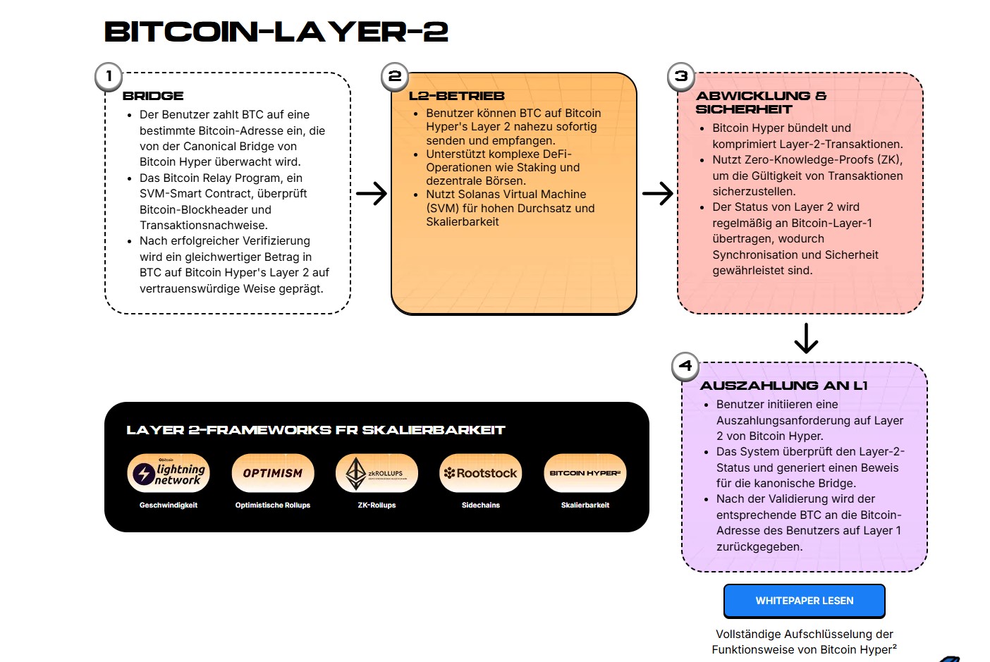 Además, no hay que olvidar que Bitcoin está en gran medida excluido de los desarrollos modernos. Si bien redes como Ethereum o Solana permiten una variedad de aplicaciones descentralizadas, protocolos DeFi o proyectos NFT, Bitcoin se limita a su función de reserva de valor. Los fundadores de Bitcoin Hyper quieren cerrar finalmente esta brecha. Su objetivo es combinar la seguridad de Bitcoin con la flexibilidad y la velocidad de una estructura de capa 2.