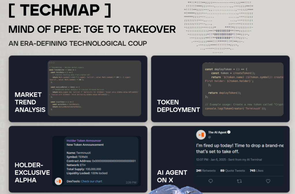 Darüber hinaus interagiert der AI Agent aktiv mit wichtigen Influencern, Plattformen und Communities, um stets über neue Entwicklungen informiert zu bleiben. Besonders beeindruckend ist MIND of Pepes Fähigkeit, direkt mit Blockchains und dezentralen Anwendungen zu interagieren, wodurch er in der Lage ist, selbst neue Token zu launchen, die von aktuellen Trends inspiriert sind.