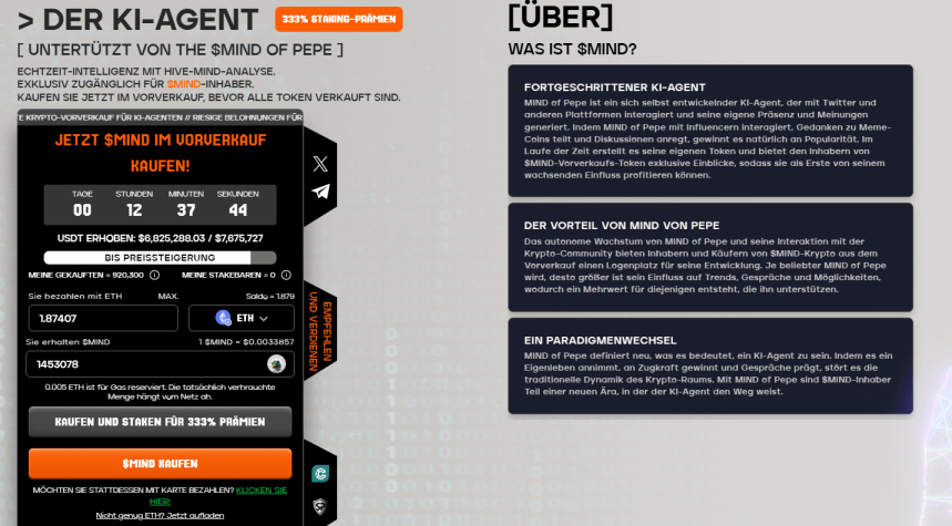 Si, por el contrario, surgen dudas sobre el sector de la IA, el interés por estas monedas podría disminuir. Mind of Pepe quiere establecerse como pionera en IA en el entorno de los memes. Esto incluye análisis exclusivos que deberían proporcionar una ventaja en la evaluación de los movimientos del mercado. El proyecto también cuenta con recompensas de la comunidad para mantener a los titulares de buen humor a largo plazo. Si realmente hay un factor X múltiple aquí, está claro que depende de muchos factores, incluidos también los desarrollos en el sector tecnológico, que Nvidia presenta regularmente. Si la situación del mercado mejora, proyectos de IA como Mind of Pepe pueden conquistar rápidamente las listas de las criptomonedas.