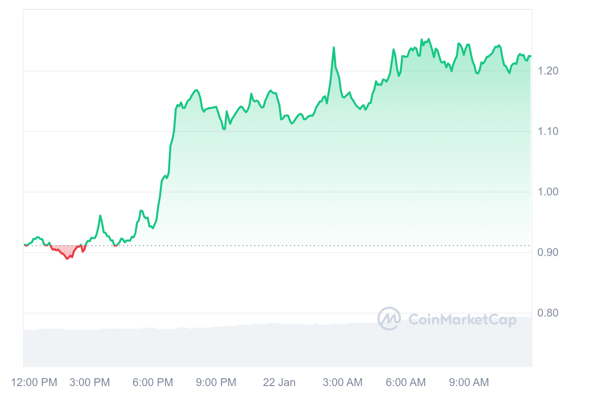 Es otro memecoin que registra importantes ganancias diarias: AI Agent Crypto ai16z (AI16Z) lleva semanas revolucionando los mercados de criptomonedas, pero se vio sometido a una enorme presión la semana pasada: los bajistas hicieron caer el memecoin AI Agent de 1,29 dólares a 0,74 dólares, un increíble descenso del -42,64 por ciento. Sin embargo, los inversores adinerados parecen estar aprovechando la pausa para realizar nuevas compras, ¡lo que proporciona a ai16z (AI16Z) un enorme impulso alcista! ¡ai16z (AI16Z) ha ganado un +37,33 por ciento en las últimas 24 horas, más que cualquier otra criptomoneda importante!