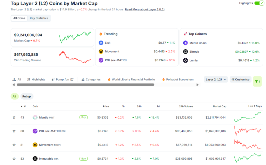 (Top Layer-2-Coins nach Marktkapitalisierung – Quelle: CoinGecko)