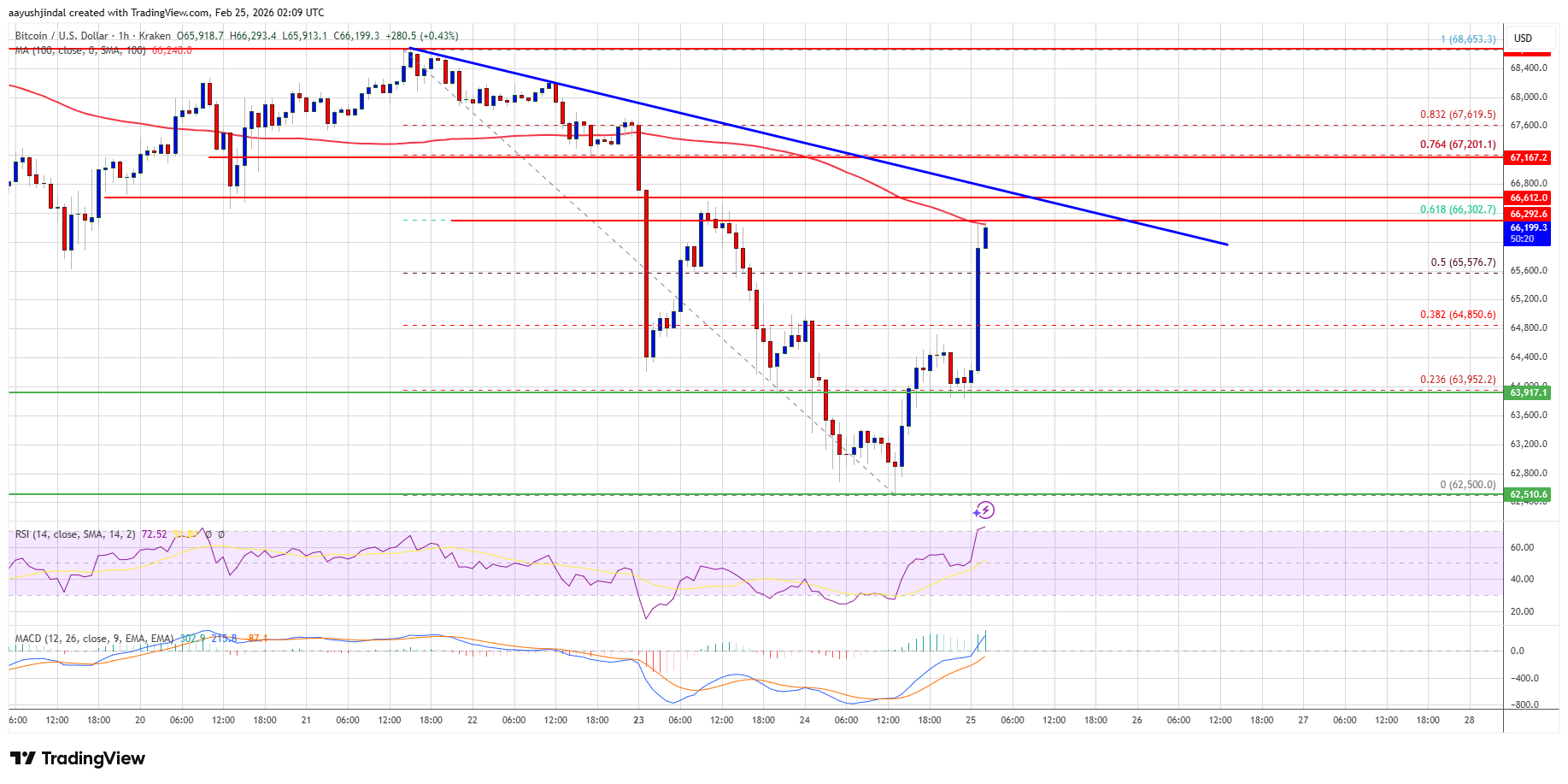 El precio de Bitcoin no logró mantenerse por encima de $65,000 y se hundió aún más. BTC ahora se recupera de las pérdidas de $62,500 y enfrenta obstáculos cerca de la zona de $66,500.