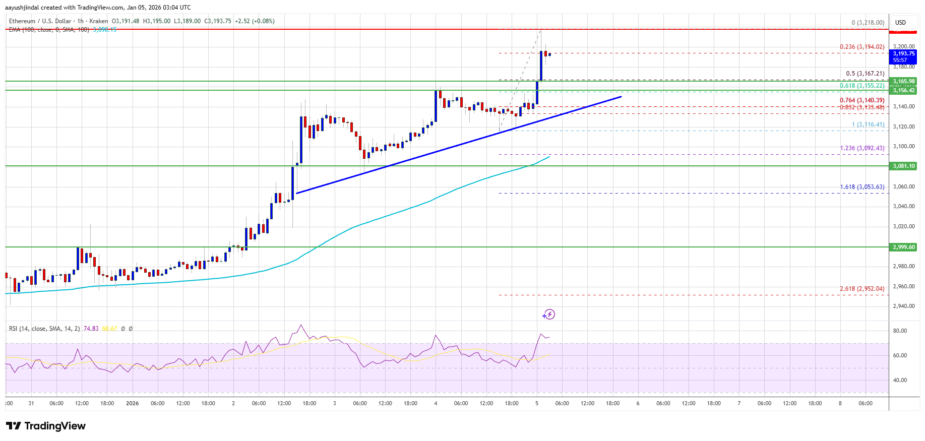 El precio de Ethereum inició un movimiento alcista estable por encima de $3,050. ETH ahora está consolidando las ganancias y podría apuntar a más ganancias por encima de $3,200.